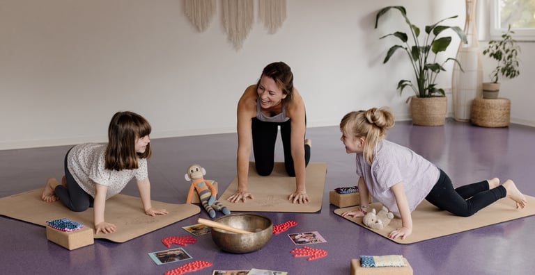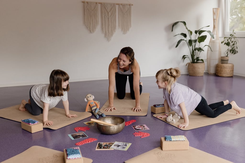 Ergänzend zu den Feriencamps bietet Klein A auch regelmäßige an: Kinder-Yogakurse, Geburtstagspartys & Familien-Yoga-Retreats