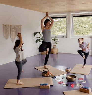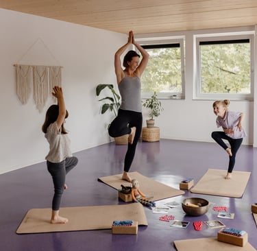Die Kurse richten sich an Erwachsene und Kinder und verbinden achtsame Bewegung, Atem und Stabilität in klar strukturierten Kursformaten.